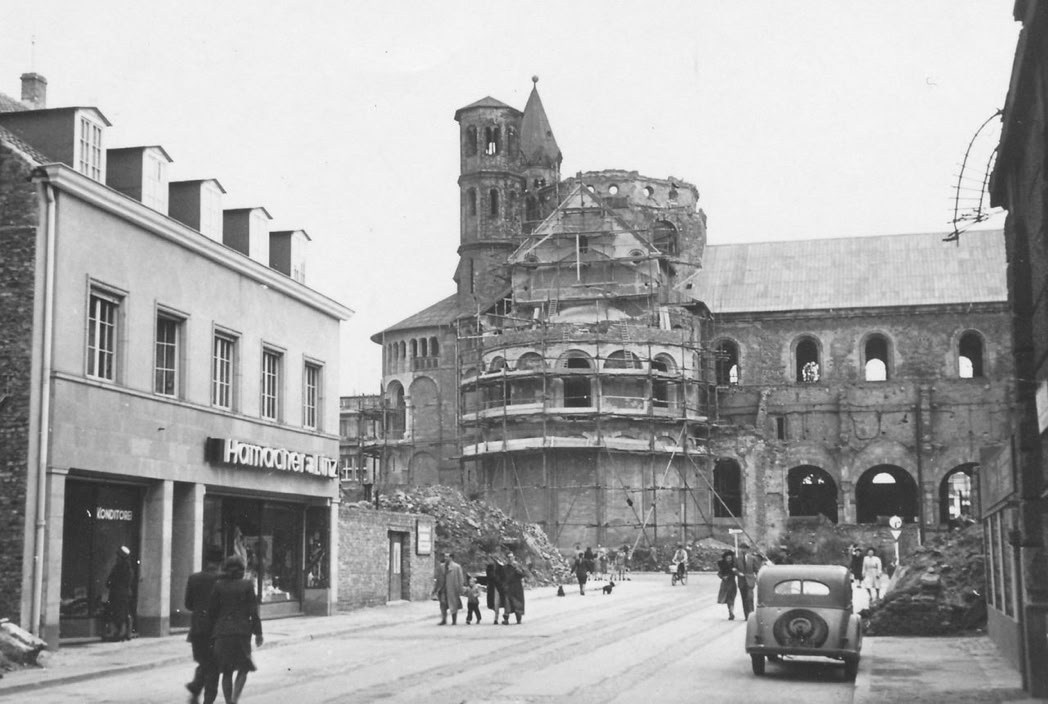 Schwere Kriegsschäden an Kirche und umliegender Bausubstanz; anschließend langwieriger Wiederaufbau (erste Notinstandsetzung 1950er, größere Rekonstruktionen bis in die 1970er).